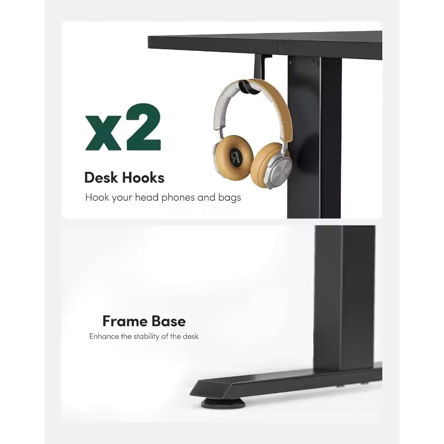Go from sitting to standing in one smooth motion with this complete active workstation providing comfortable viewing angles and customized user heights. Provides ample space for monitors, workspace accessories, supplies, and decor. The one-piece top is free of seam breaks and is made of sturdy particle board, creating a smooth and scratch-resistant surface. Enjoy a height its frame’s powerful motor and strong legs using precise telescopic height adjustment. With all-steel construction, the desk frame supports up to 220 lbs. This ensures maximum stability and sturdiness for a variety of monitor and laptop setups, giving you a solid foundation for all your equipment. The easy-to-use push-button controller features 4 memory presets to save your desired heights. With a simple click of a button, you can say goodbye to long hours of sitting and end the day feeling energized and refreshed. Transform your workspace into a comfortable, modern, and ergonomic environment with the Electric Standing Desk, featuring a spacious 60 x 24-inch surface and smooth height adjustability. Designed for both home and office use, this workstation helps reduce fatigue, improve posture, and boost productivity with effortless sitting-to-standing transitions.