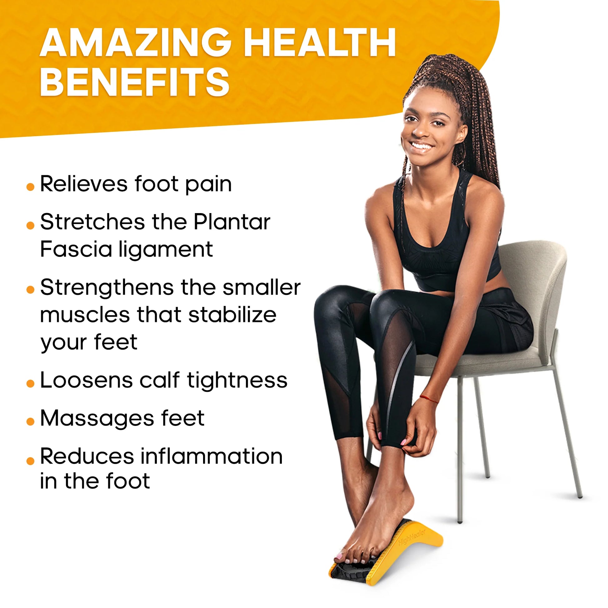 This 5-in-1 foot and calf massager designed to target plantar fasciitis, Achilles tendonitis, and general foot discomfort. Developed by a podiatrist, it combines stretching, strengthening, and massage in one compact, easy-to-use device. Whether you’re an athlete, a busy professional, or someone struggling with chronic foot pain, HighHealer delivers relief in just 10 minutes a day.