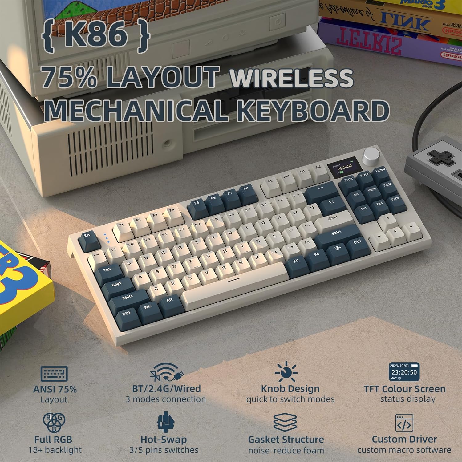 Unlock unlimited customization with the K86's open-source software, giving you complete control over key assignments, FN combinations, screen animations, and key sensitivity. The cloud-driven system ensures automatic updates and seamless integration, so you can personalize every aspect of your typing and gaming experience. Whether you're a casual user or a competitive gamer, the K86's software offers the flexibility to create your ideal setup. - Multi-Device Connectivity & Triple Mode Support: